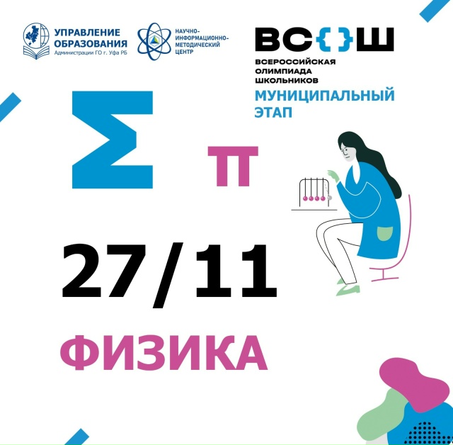 27 ноября в Башкирской гимназии №102 им. Р.Т. Бикбаева, школе № 56 им. Г.С. Овчинникова, гимназии №16, школе №4, школе № 31, Инженерном лицее № 83 им. Пинского М.С. УГНТУ, школе №7 состоится муниципальный этап всероссийской олимпиады школьников по физике. В нём примут участие 1 515 учеников 7-11-х классов.