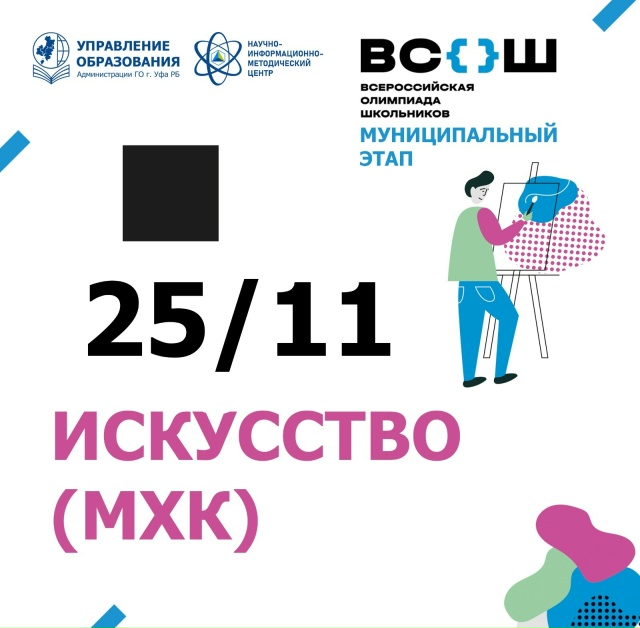 25 ноября на базе школы №113 им. И.И. Рыбалко, школы № 70 им. Г.М. Подденежного, школы № 34, центра образования №10, центра образования № 159, школы № 80 имени А.М. Матросова, школы №27 проходит муниципальный этап всероссийской олимпиады школьников по искусству (МХК).